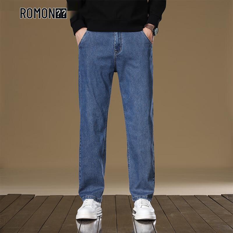 ROMON Men's Lyocell Tencel Loose Straight-Leg Jeans (Thickened for Autumn/Winter)