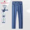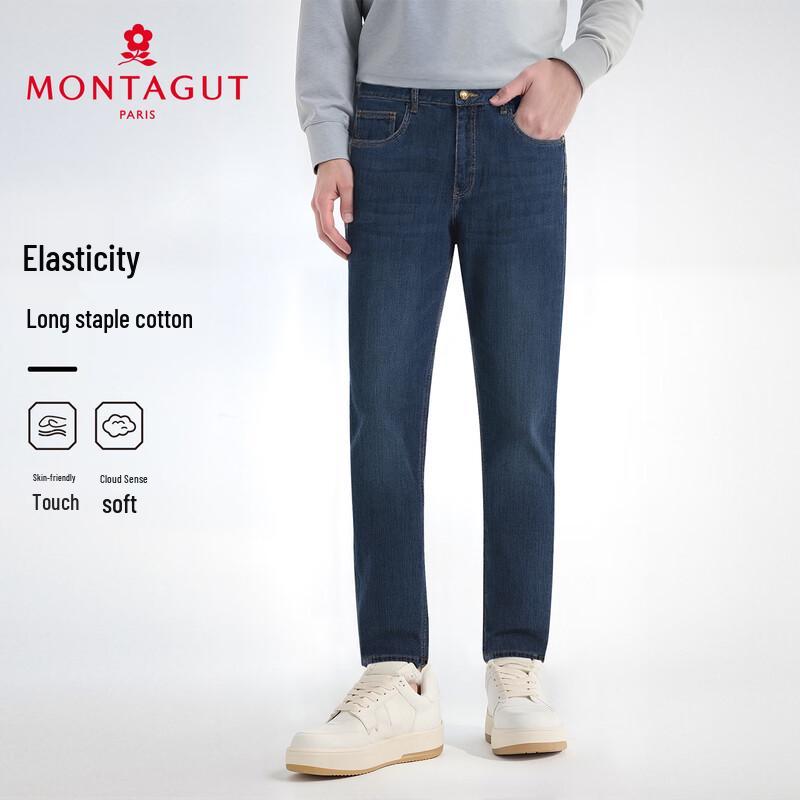 MONTAGUT Men's Deep Blue Straight Leg Long-Staple Cotton Jeans