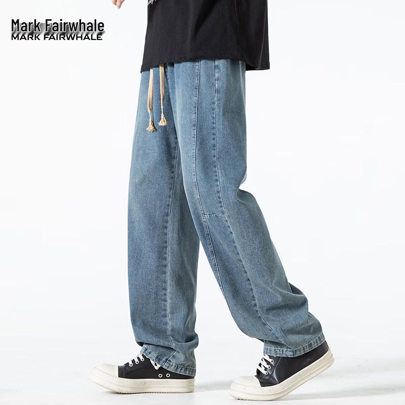 Experience versatile comfort with these Mark Fairwhale men's straight-leg loose-fit denim jeans. Crafted from a durable blend of cotton, polyester, and regenerated cellulose fiber, these casual trousers offer a slight stretch for ease of movement. Featuring a natural waist with a drawstring closure, they are designed for daily wear or work settings in spring and autumn. The classic solid color and wear-resistant fabric make them a stylish and practical choice for young and middle-aged men.