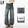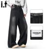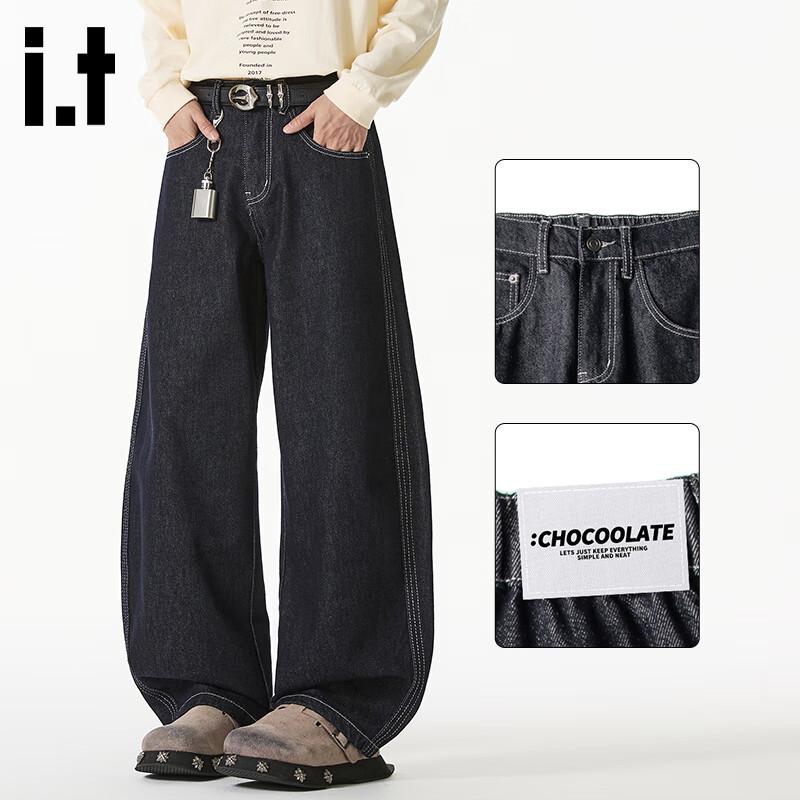 CHOCOOLATEit Men's Raw Denim Curved Wide-Leg Jeans