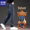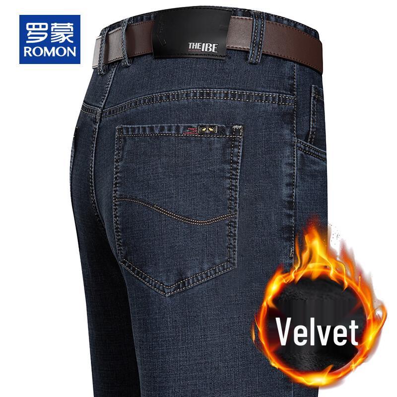 Stay warm and stylish this autumn and winter with ROMON Men's Fleece-Lined Denim Jeans. Crafted from a comfortable cotton-blend stretch denim, these thickened, straight-leg jeans offer a loose fit for maximum comfort and versatility. Featuring a high waist and a solid mid-blue wash, they are wear-resistant and suitable for both casual everyday wear and business settings. Perfect for young and middle-aged men seeking a blend of warmth, comfort, and simple, modern style.