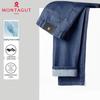 These MONTAGUT men's straight-leg jeans offer ultimate comfort and versatile style. Crafted from a premium Tencel blend fabric, they are designed to be wear-resistant, washable, and wrinkle-resistant, making them ideal for everyday wear across all seasons. Featuring a classic straight-leg cut and natural waist, these micro-elastic jeans provide a comfortable and flattering fit for both young and middle-aged men.