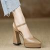 Handmade women's shoes new 2025 waterproof platform high-heeled sandals thick heel pointed buckle beige temperament high heels