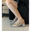 French silver Mary Jane women's shoes bow single shoes square head thick heel high heels women's one-button bag head sandals