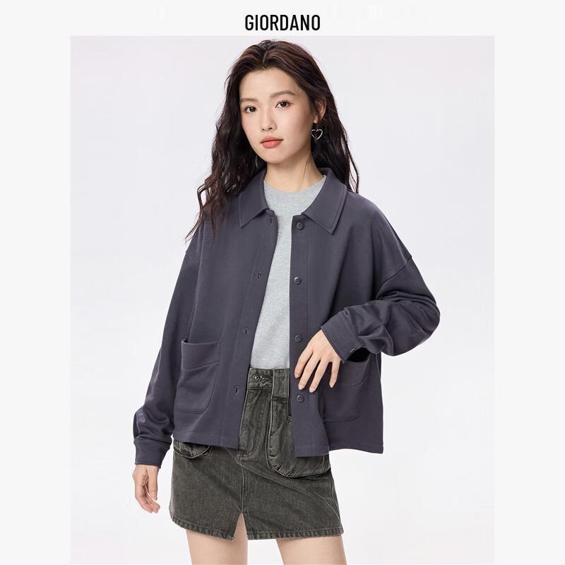 Giordano Women's Double Pocket Loose Lapel Short Cardigan