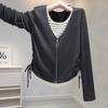 Women's Navy Collar Fake Two-Piece Slim Fit Sweatshirt
