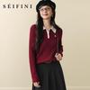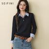 SEIFINI Women's Faux Two-Piece Long Sleeve Knit Top