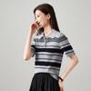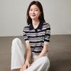 Women's Academic Style Striped Polo Knit Top