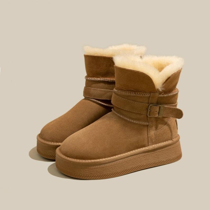 Yunfu Warm Flip Fleece Thick-soled Medium Tube Snow Boots Women's 2025 Winter New Mao Mao Thickened Northeast Cotton Shoes