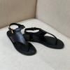 Sheepskin version~ niche leather pinch foot buckle with Roman sandals women's retro bevel cover ugly flat bottom cool slippers