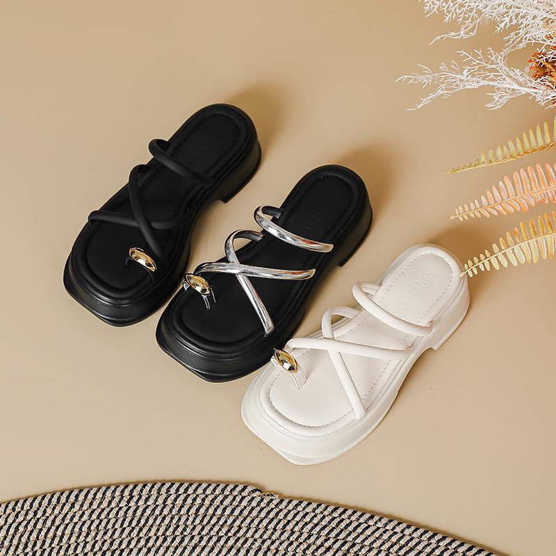 Silver high-end thick-soled slippers women's summer new pinch feet to wear Internet celebrities half-drag sandals muffin bottom beach shoes