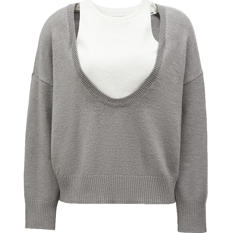 VEROMODA Women's Faux Two-Piece U-Neck Color-Block Long-Sleeve Knit Sweater