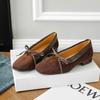 Retro suede British style flat Mary Jane women's shoes bow ballet shoes one pedal shallow mouth square head single shoes