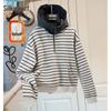 Women's Wool Blend Hooded Color Block Stripe Sweater