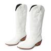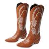 FOREADA Women Knee High Cowboy Long Boots Pointed Toe Chunky High Heels Embroidery Wester Gogo Boots Ladies Fashion Shoes Winter Red