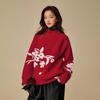 INMAN Women's 2025 Winter Cherry Jacquard Crew Neck Sweater