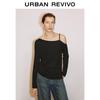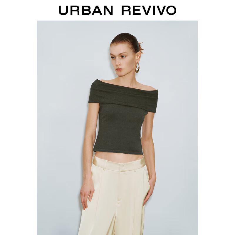 UR 2024 Autumn Women's French Off-Shoulder Short Knit T-Shirt