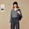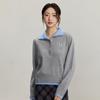 INMAN Women's Faux Two-Piece Colorblock Shirt Collar Knit Sweater