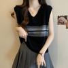 TonLion Women's Wide Stripe V-Neck Pullover Vest