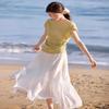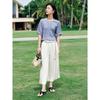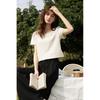 Sancai Dámský svetr s krátkým rukávem a copánkovým vzorem ze směsi vlny