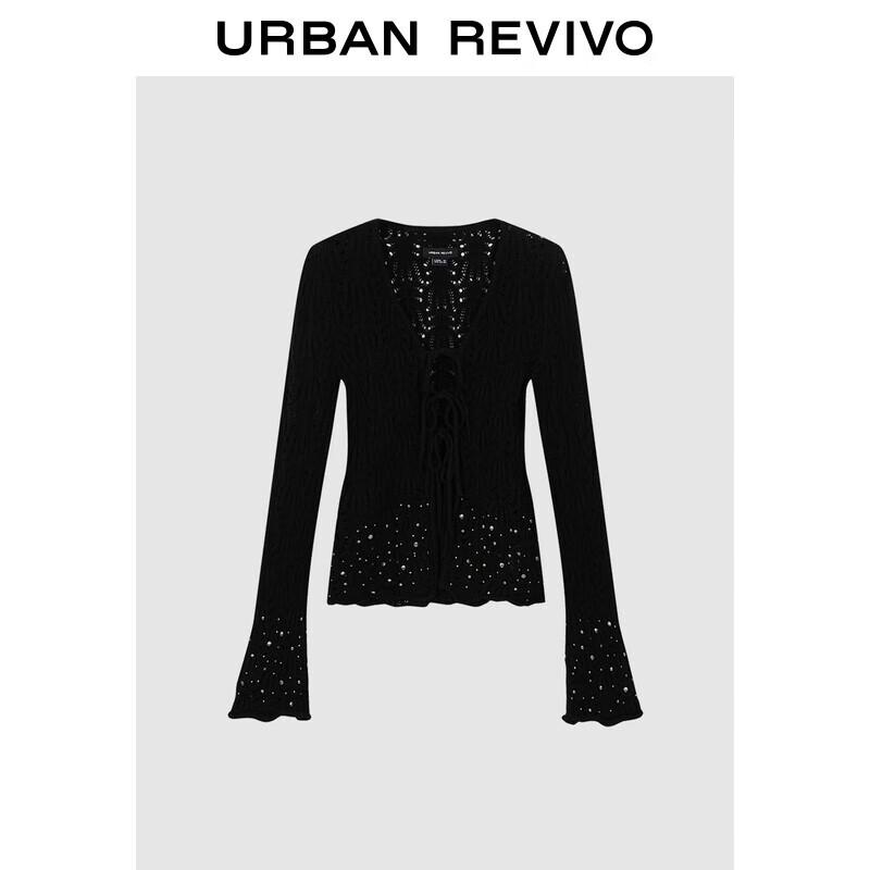 UR 2025 Spring Beaded Tie-Knit Cardigan