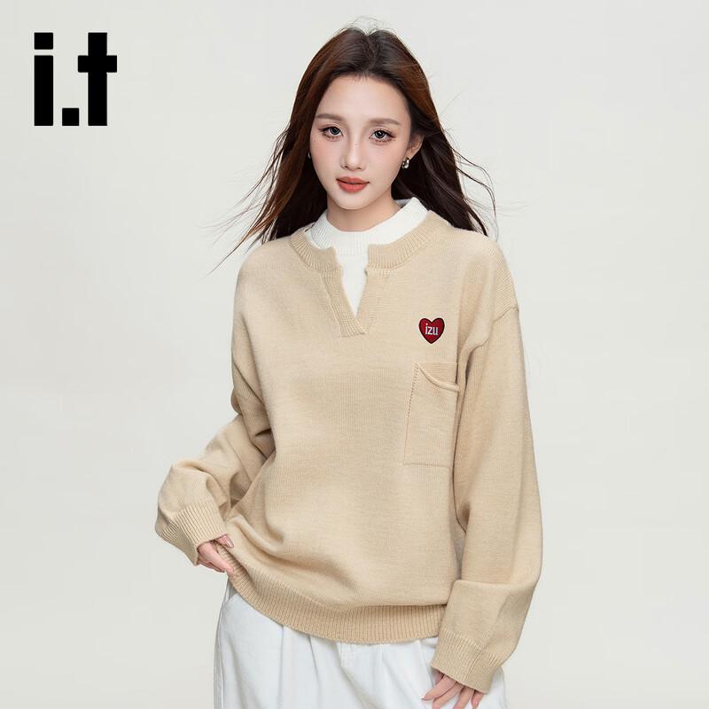 Izzue Faux Two-Piece Round Neck Knit Sweater
