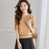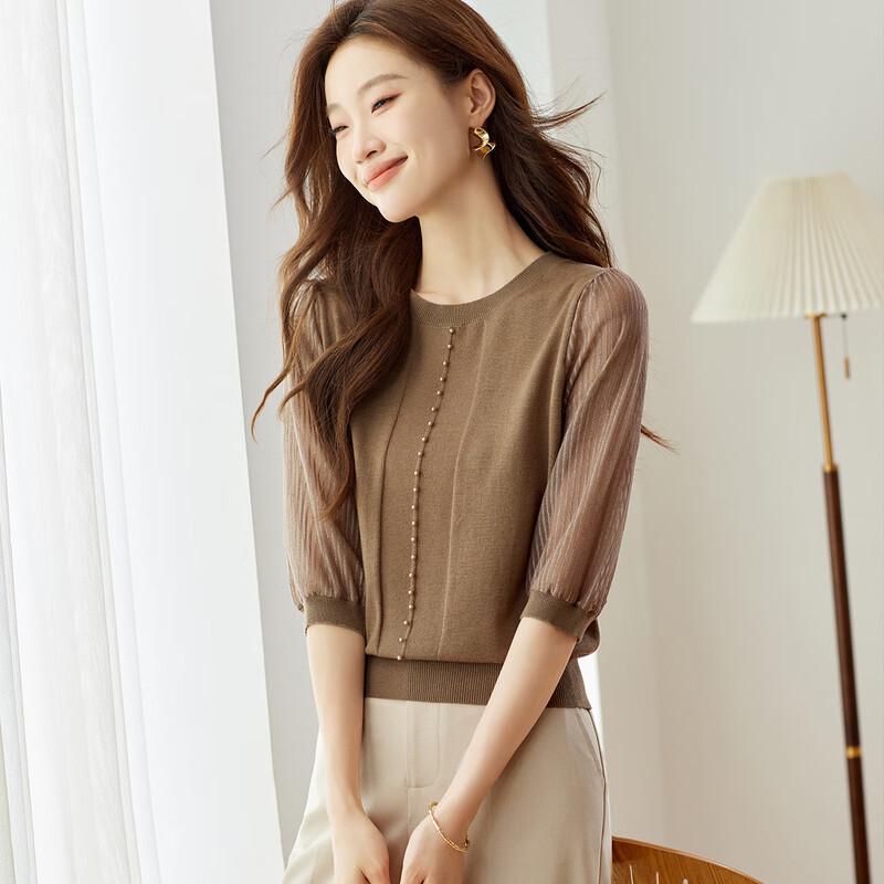 Women's Thin Patchwork Wool Blend Seven-Quarter Sleeve Sweater