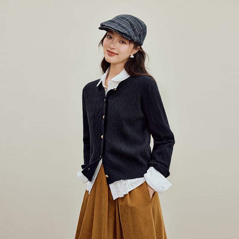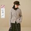 Inman Women's Retro Color Block Round Neck Knitted Cardigan Sweater