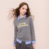 Sancai Contrast Letter Round Neck Knitted Sweater