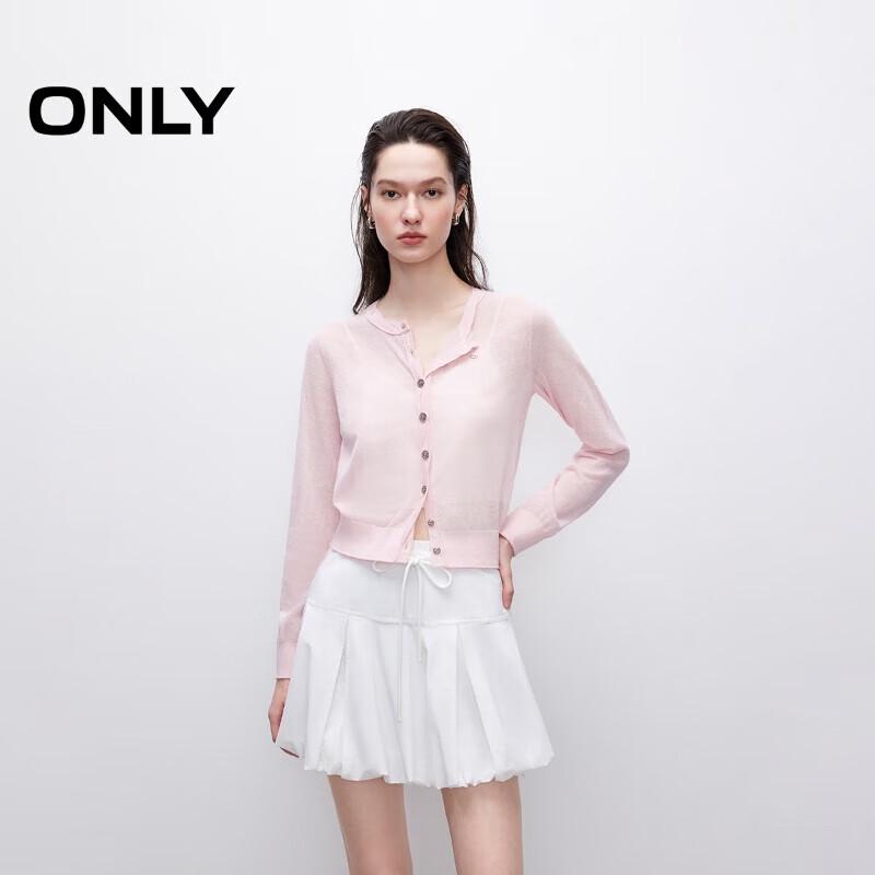 ONLY 2025 Summer Solid Pleated Round Neck Knit Cardigan