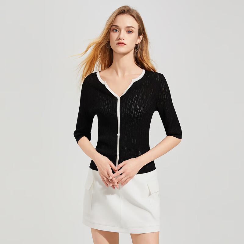 Tatune Women's Summer Minimalist Short-Sleeve Knit Top