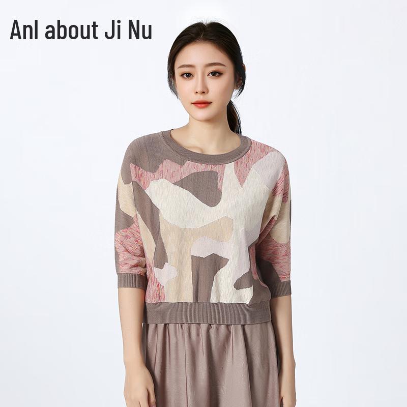 Anlom Autumn/Winter Geometric Colorblock Mid-Sleeve Pullover