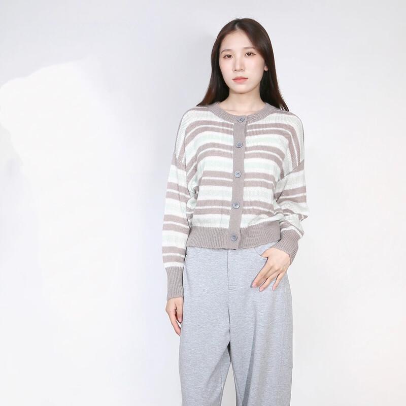 Sweet Basil Women's Casual Striped Long Sleeve Knit Sweater