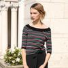 Anlom Women's Striped Cotton Linen Blend 3/4 Sleeve Knit Top