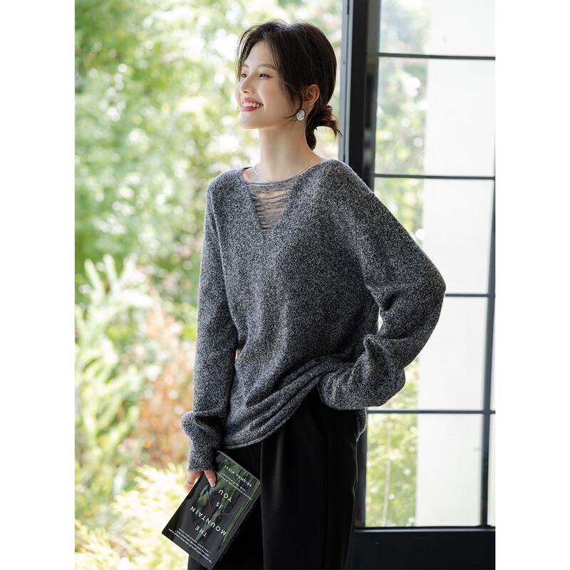Mokana Women's V-Neck Long Sleeve Wool Sweater