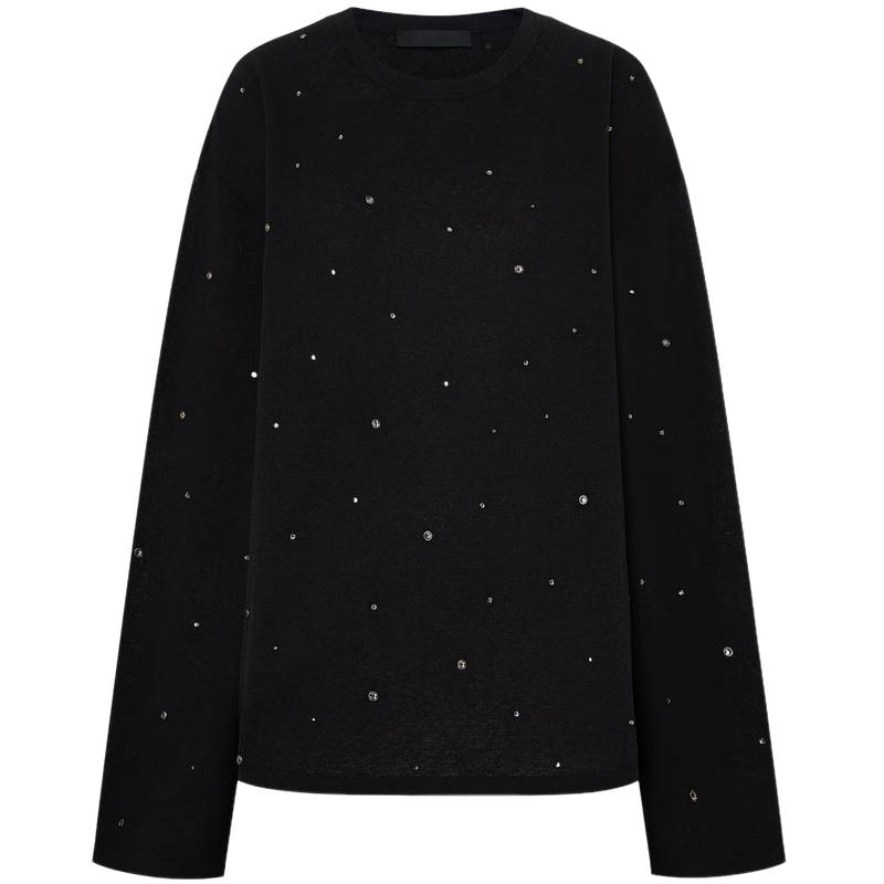 MO&Co. 2025 Spring Loose-Fit Linen Blend Rhinestone Round Neck Knit Top