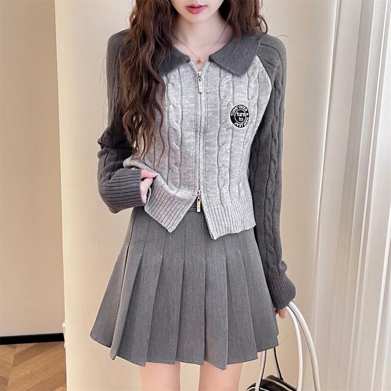 TonLion Women's Autumn Color-Block Cable-Knit Zip Cardigan