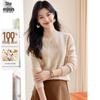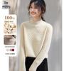 SheEnjoy Women's 100% Pure Wool Semi-High Collar Cable Knit Sweater