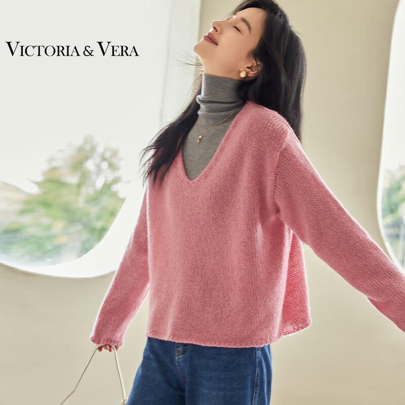 VICTORIA&VERA Women's V-Neck Long Sleeve Knit Sweater