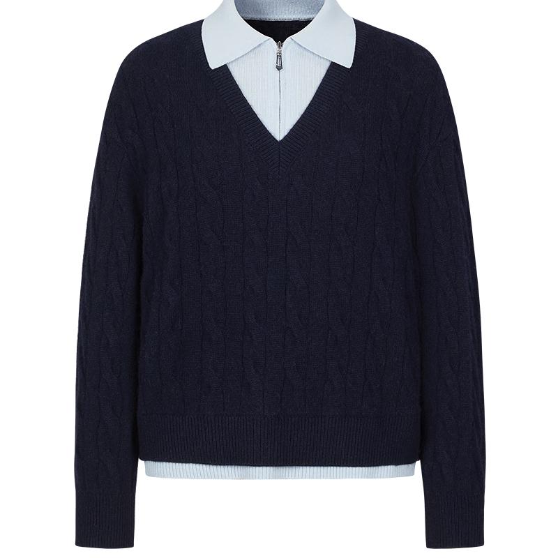 Jiuzi Annacole MIU Series Preppy Lapel Faux Two-Piece Knit Sweater