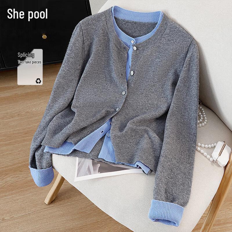 Women's Round Neck Faux Two-Piece Knit Sweater