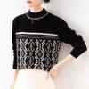 TUHUANG Women's Pure Wool Color-Block Half-High Neck Knit Sweater