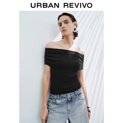 UR 2025 Spring Women's Slim Off-Shoulder Knit Top with Tie Detail
