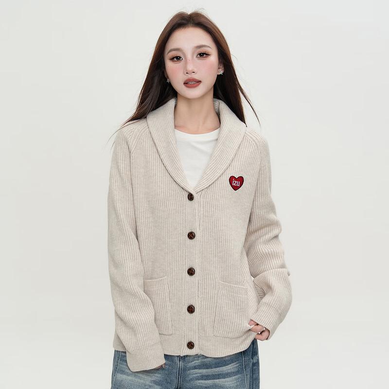 izzue Women's Heart Pattern V-Neck Cardigan Sweater