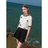Sancai Women's Short Sleeve Slim Fit Wool Blend Cable Knit Top