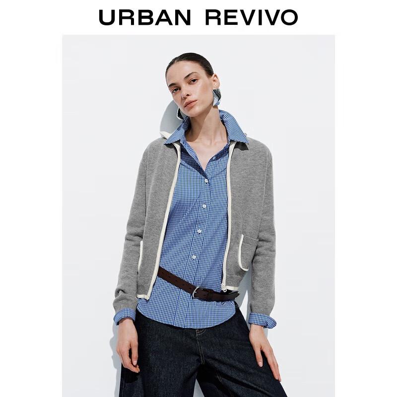 UR Women's Short Hooded Color Block Knit Cardigan