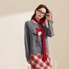 Sancai 2025 Winter Embroidered Round Neck Loose Knit Pullover