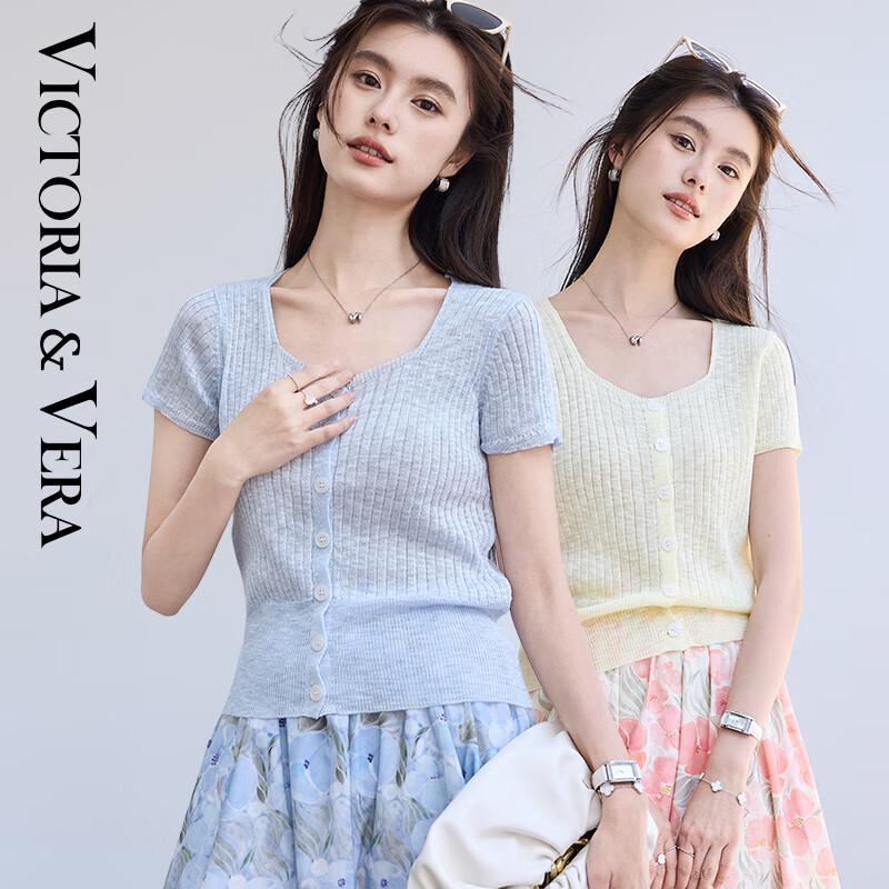 VICTORIA&VERA Women's Dopamine U-Neck Short Sleeve Knit Top