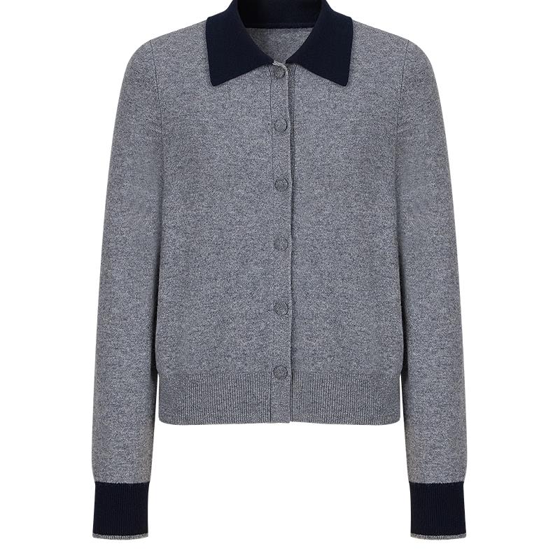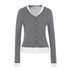 Annacoco Women's 100% Wool Color-block Lapel Knit Cardigan