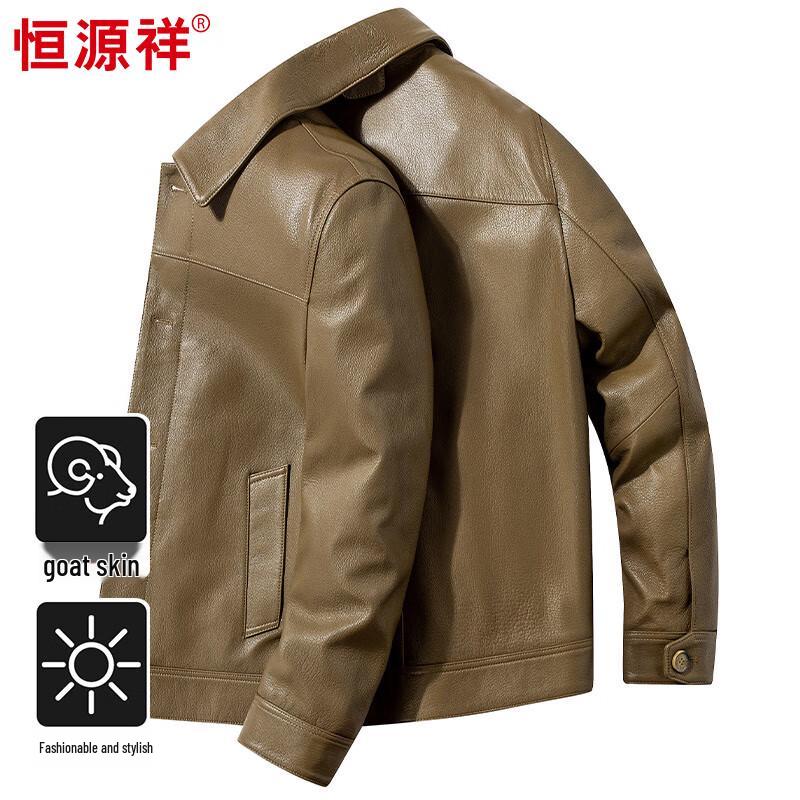Hengyuanxiang Men's Camouflage Goatskin Biker Leather Jacket